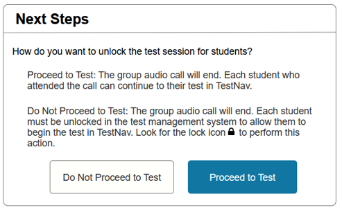 If Do Not Proceed to Test is selected, the proctor must individually unlock each tester when they decide it is appropriate to do so.
