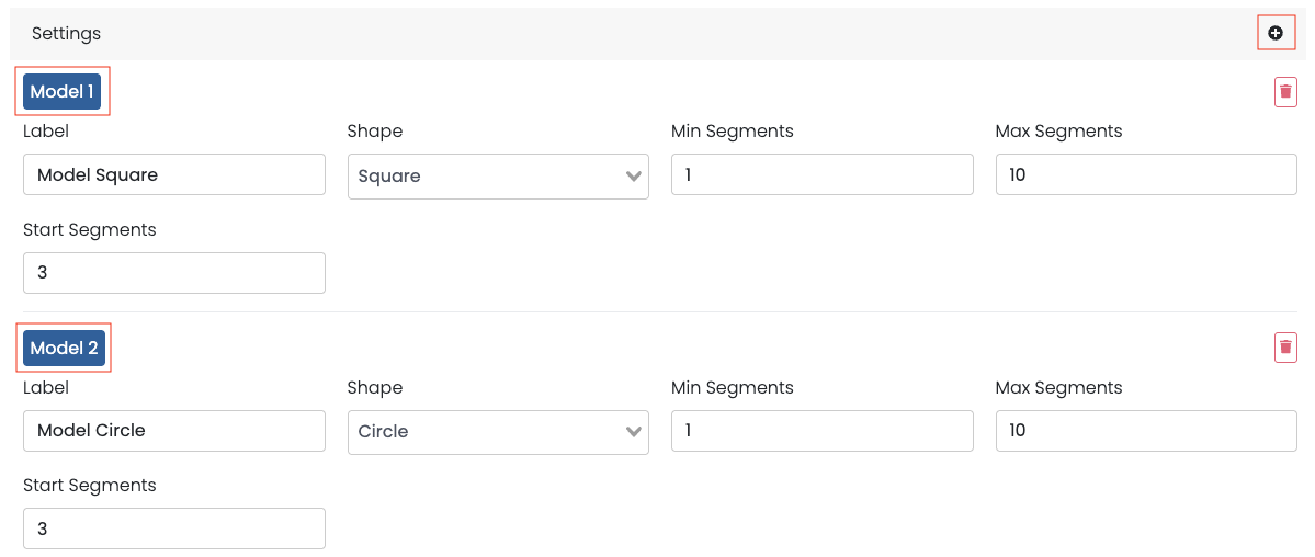 This interaction type allows authors to add a prompt, set the shape (circle or square), min/max segments, start segments, and alt text. Students can add/remove segments by selecting the buttons and add responses by selecting in each segment. There is also a clear button which will reset the model. This is a machine scored interaction.