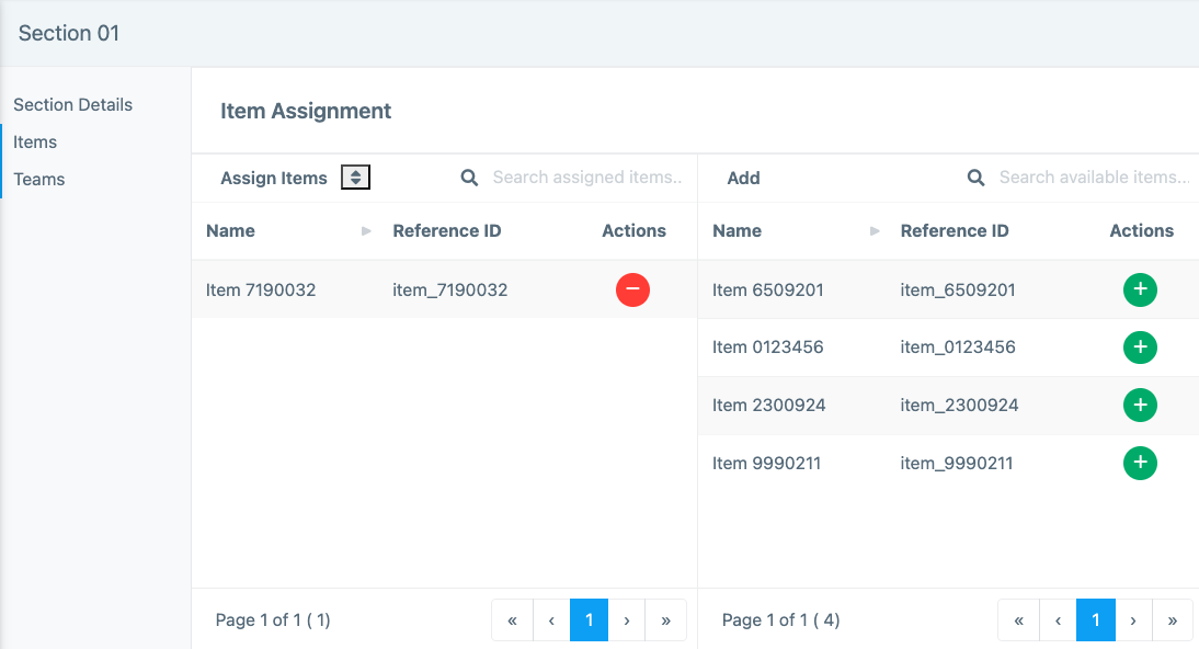 - Ability to assign specific teams to an item or a group of items.