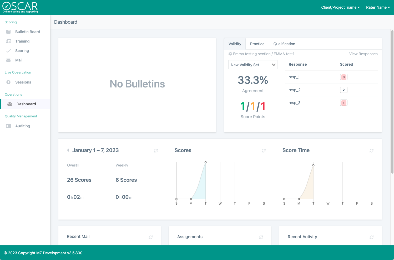 Validity results can be viewed from the Personal Dashboard. If this option is active for your account, you will be able see your validity performance against each set of Validity responses as well as view the individual responses with their scores and any response feedback from scoring admins.