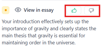The student can provide a thumbs up or thumbs down to provide feedback on the comments.